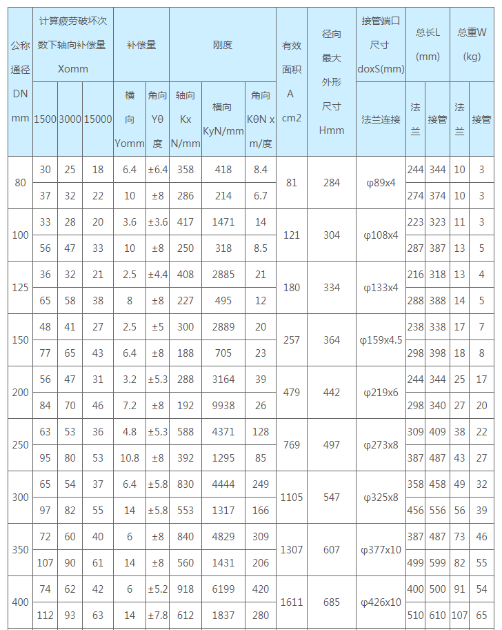 通用型(xíng)波紋補償器技術參數:公稱壓力1.0MPa