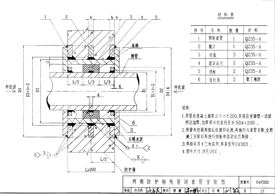 1、剛性密閉套管是按照國家標準04FS02製造生產,材料采用Q235-A。
