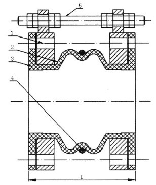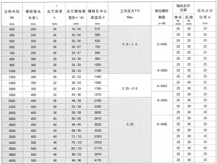 5、 當橡膠接頭在水(油)泵出(chū)口近距離或開停(tíng)頻繁條件下使用時,為減少橡膠接頭(tóu)長度的(de)拉伸和壓(yā)縮(suō)過大而給泵和管道帶來的(de)影響,應在法蘭兩端增加限位裝置(zhì)。